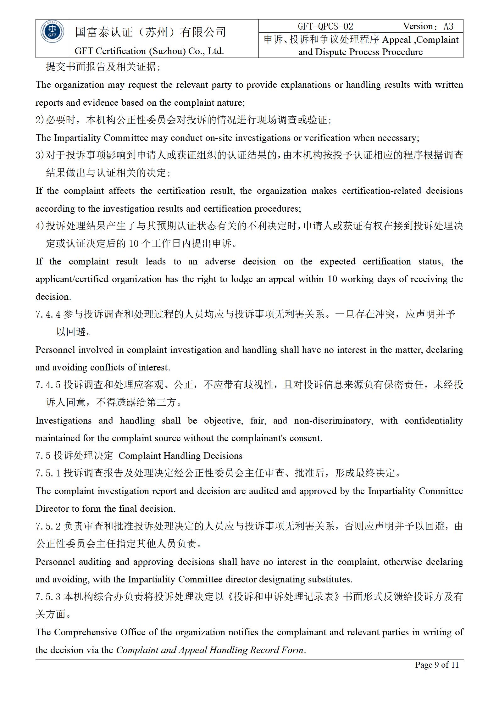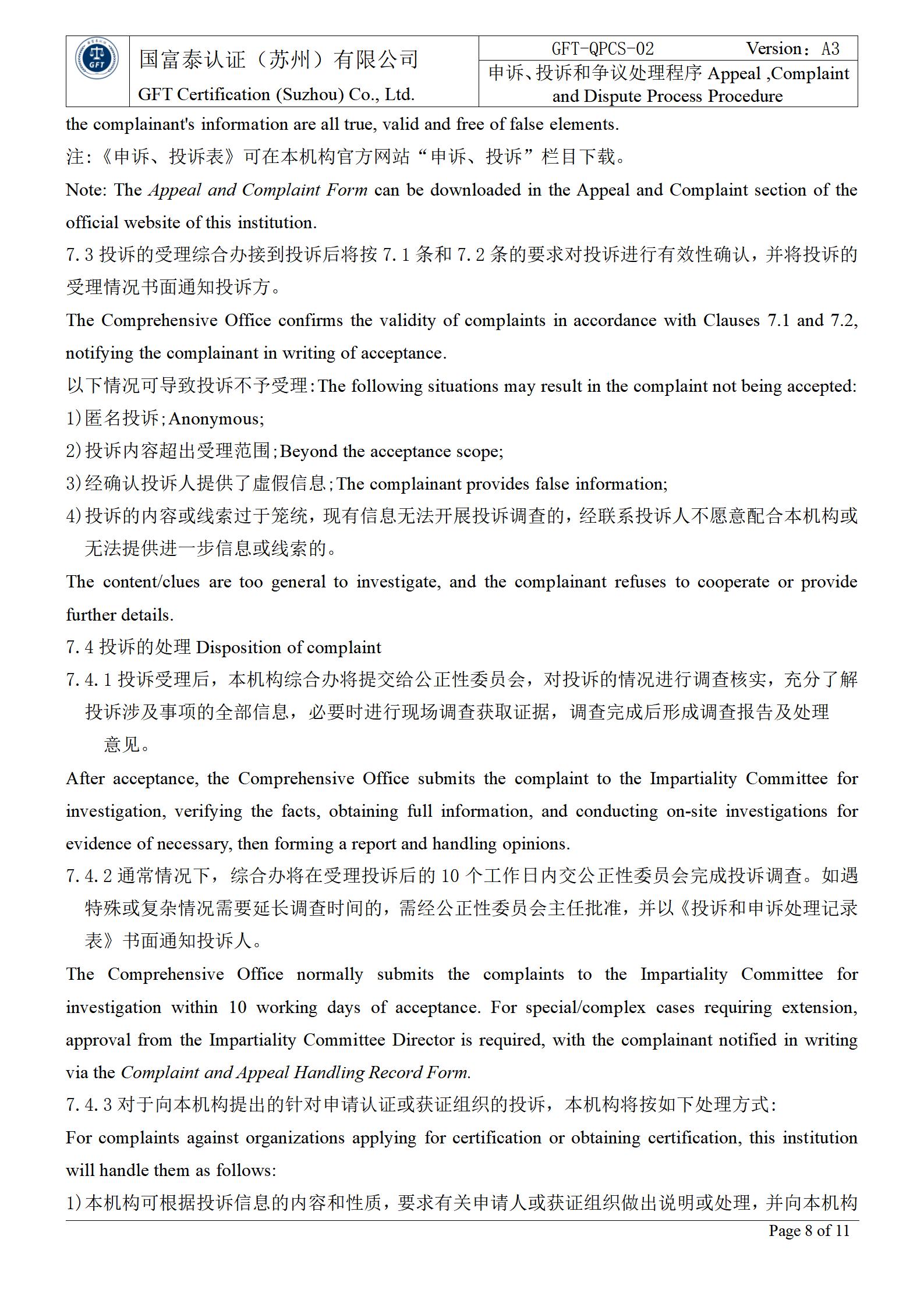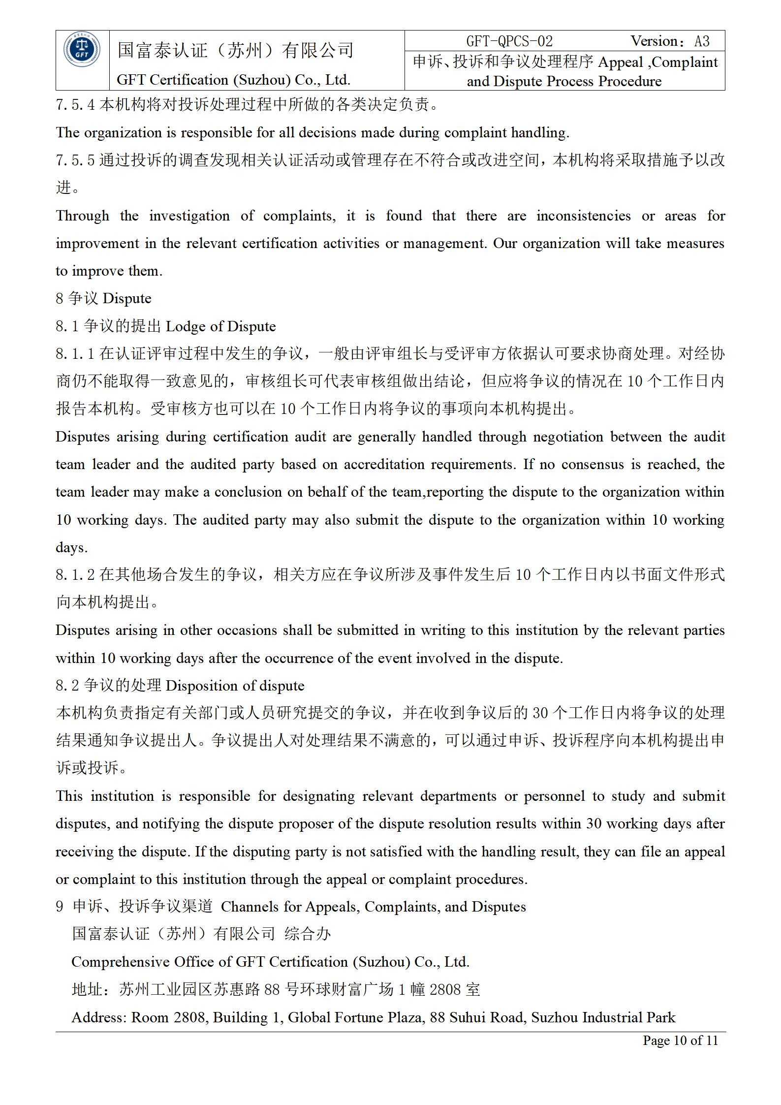 申诉/投诉和争议的处理规定