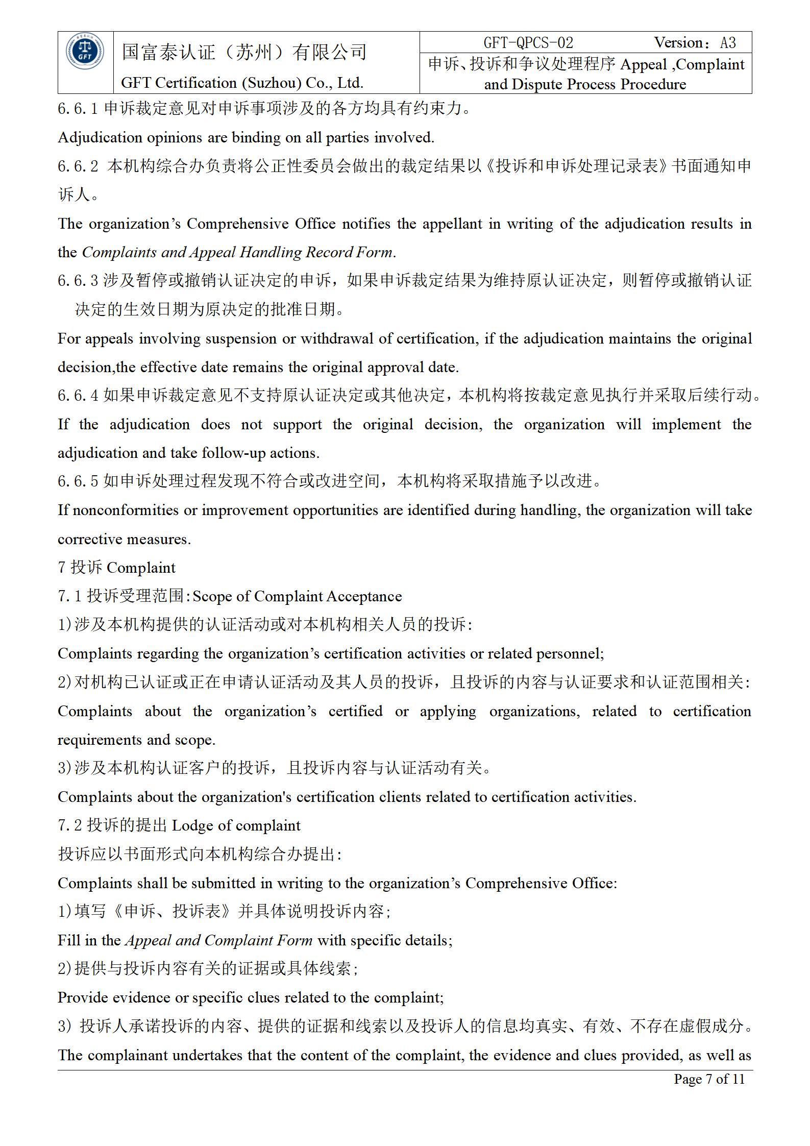 申诉/投诉和争议的处理规定